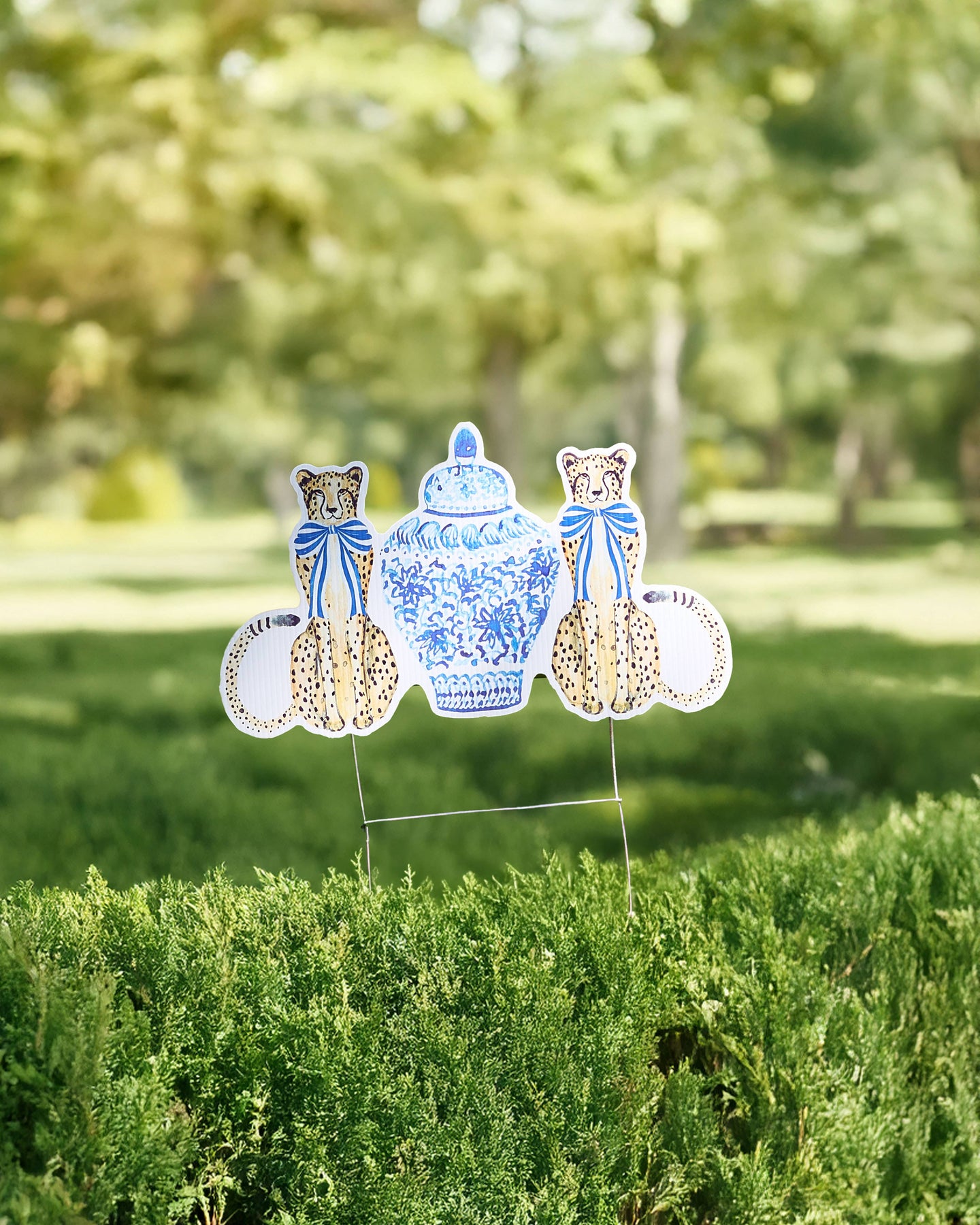 Chinoiserie Cheetahs Garden Stake Yard / Plant Pot Sign