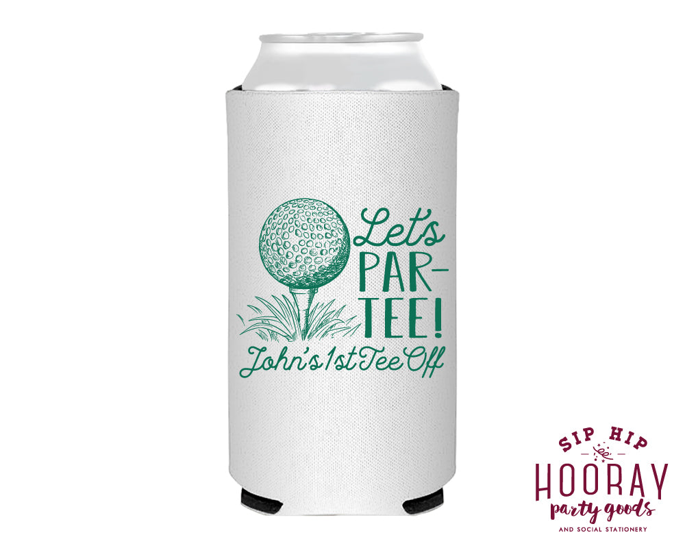 Custom Let's Par Tee First Birthday Slim Can Coolers