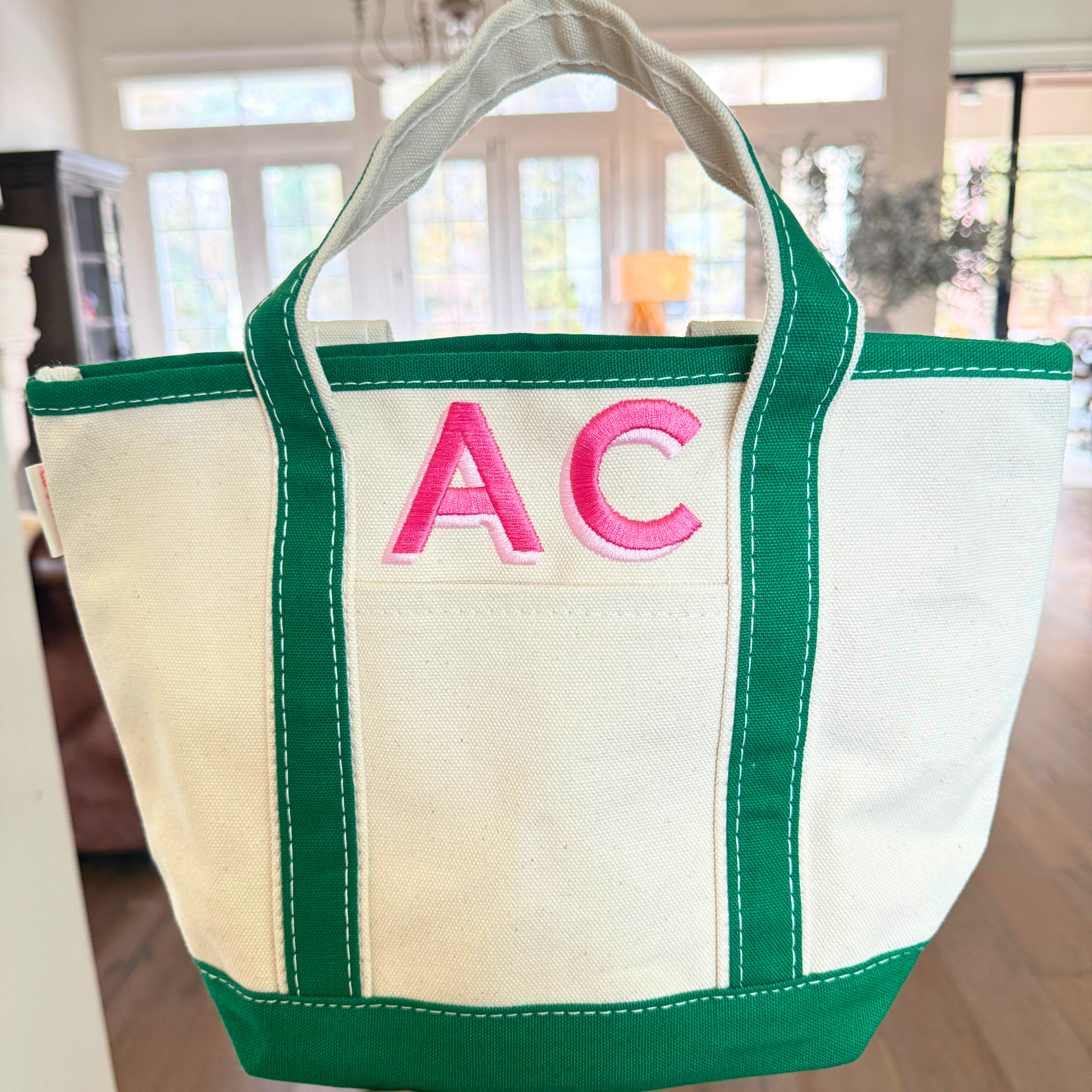 Carry your essentials in style with this roomy canvas tote featuring a custom monogram in your choice of 1, 2 or 3 letters. Pick your favorite two-color shadow font design to make it uniquely yours. The open top keeps everything accessible, while sturdy canvas construction handles daily adventures. Perfect for the beach, farmers market, or everyday errands—personalized just the way you like it!