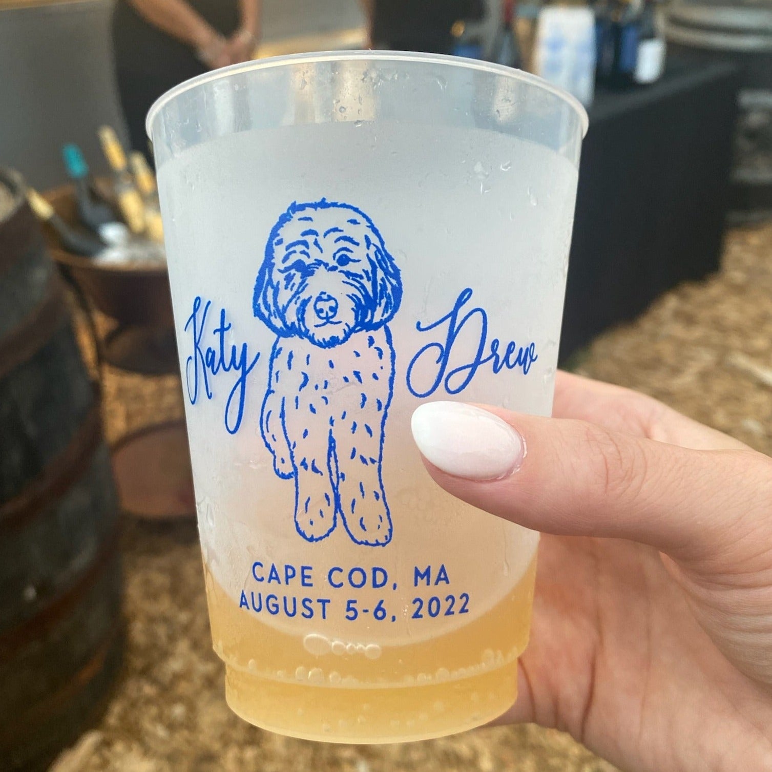 Sip Hip Hooray Custom Pet Frosted Cups are the perfect way to incorporate your fur baby into your wedding! Our Custom Pet Portraits are hand drawn by our talented in house artists from your pet’s photos! See link below to add on the Custom Pet Art to your cup order! You will also receive your own high resolution digital file of the drawing to use on other projects!