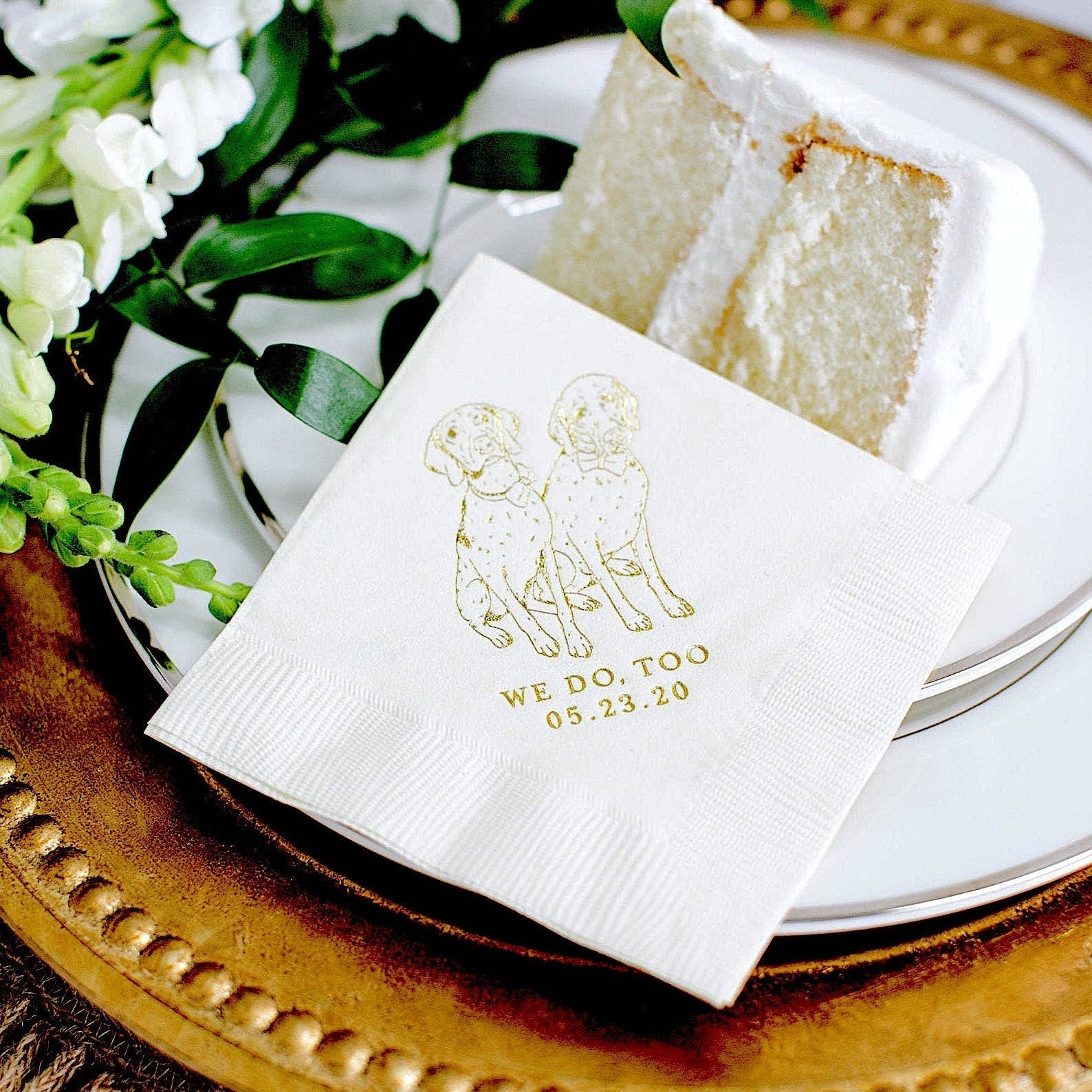 Sip Hip Hooray Custom Pet Cocktail napkins are the perfect way to incorporate your fur baby into your wedding! Our Custom Pet Portraits are hand drawn by our talented in house artists from your pet’s photos! See link below to add on the Custom Pet Art to your napkin order! You will also receive your own high resolution digital file of the drawing to use on other projects!