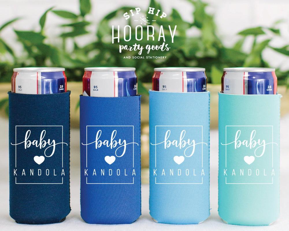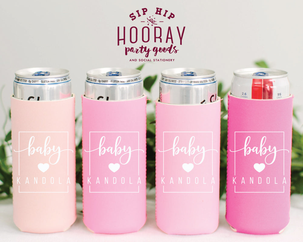 Sip Hip Hooray Custom Neoprene Slim Can Coolers are the perfect addition to any wedding, birthday, bachelorette party, vacation, reunion, retirement or to sip at home in style! Our slim can coolers fit perfectly on any skinny can! Keep the condensation off your hand and your drinks cold with your own Custom Slim Neoprene Can Coolers by Sip Hip Hooray!