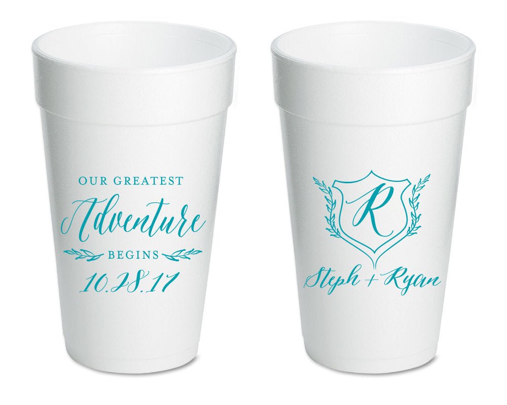 Our Greatest Adventure Wedding Crest Foam Cup Design #1688